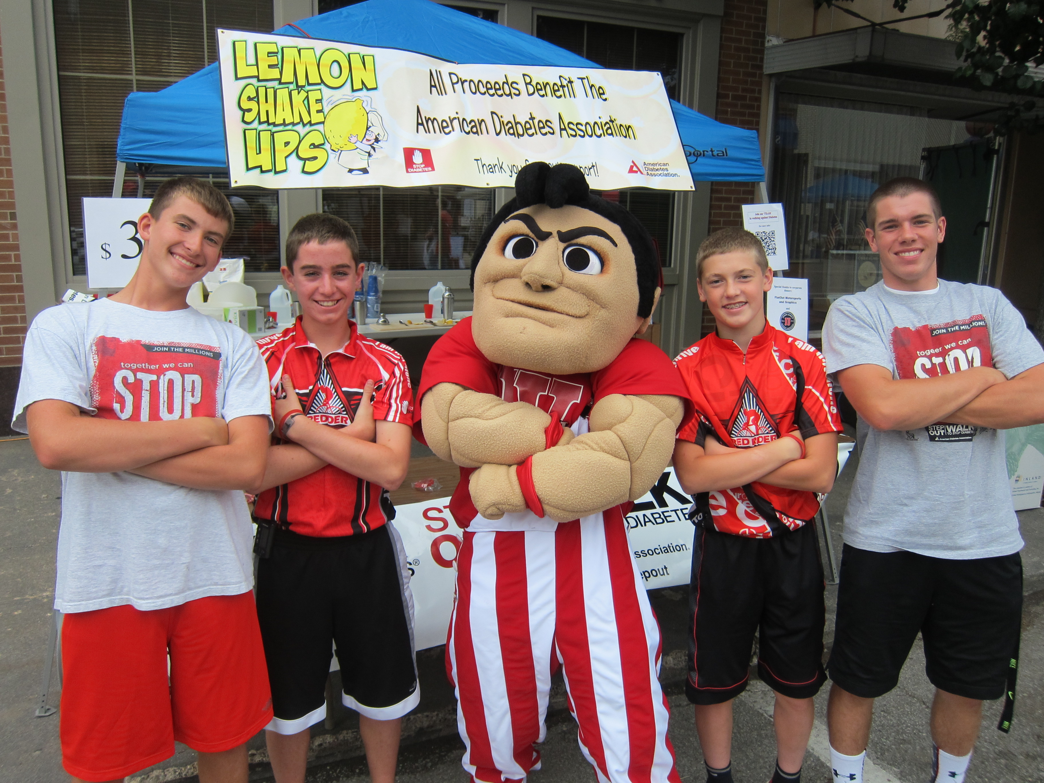 In August, Jack Reimondo, son of Rob Reimondo ’93, and friends set up a shake up booth in downtown Crawfordsville at the “Finish Line Fest” — raising money for the American Diabetes Association. A familiar friend stopped by to support the cause!