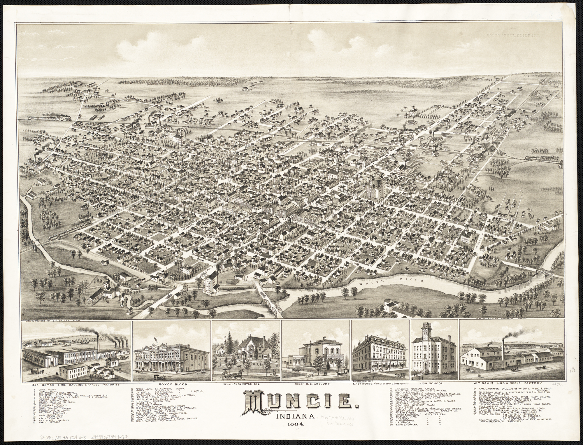 A Drawing of the Town of Muncie, Indiana in 1894 By http://maps.bpl.org – Muncie, Indiana Uploaded by tm, CC BY 2.0,