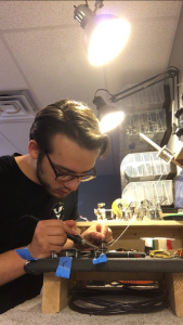 Walker Fisher ’21 Veritas Guitars– This summer, I was given the opportunity of working at Veritas Guitars in Vancouver, Washington. This internship in many ways was more than just about the experience with guitars; it was about learning things about myself, addressing suppressed thoughts and reestablishing my morals. As someone who has always loved traveling, the opportunity to drive from my small hometown in Indiana to the pacific northwest was a daunting—but thrilling—idea. Being able to see things I had only dreamed of up to that point, while also having time to reflect on life and look myself in the mirror allowed me to think of what my affect on Wabash’s campus had been this past year and question how well I truly measured up when it came to standing TALL amongst my brothers. As for the actual internship, I began working on building pickups for electric guitars. Pickups are magnetic coils that capture the vibrations produced by the strings, and then conv