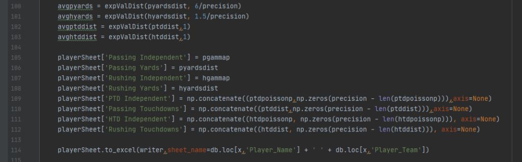 very few, if any, other colleges and universities could. I knew that any idea, big or small, Wabash would not only listen to but make a reality. I approached Economics Professor Dr. Dunaway back early in Fall of 2022 about some thoughts I had regarding DraftKings Daily Fantasy Sports (DFS). He came back to me the next day with a proposed internship centered around an idea he had to create a new way of modeling fantasy outcomes. From there, the details fell into place, the schedule set, funding received, and ideas swirled. Throughout eight weeks in June and July, Dr. Dunaway and I scoured data sets, brainstormed, and wrote code. When we weren’t “in the lab”, I had the opportunity to attend various summer events, such as the joint presentation of Dr. Dunaway and Brent Harris at the Liberal Arts at Play camp where they discussed gambling, data, and how both are being applied to the modern NFL.