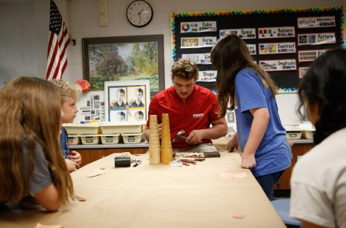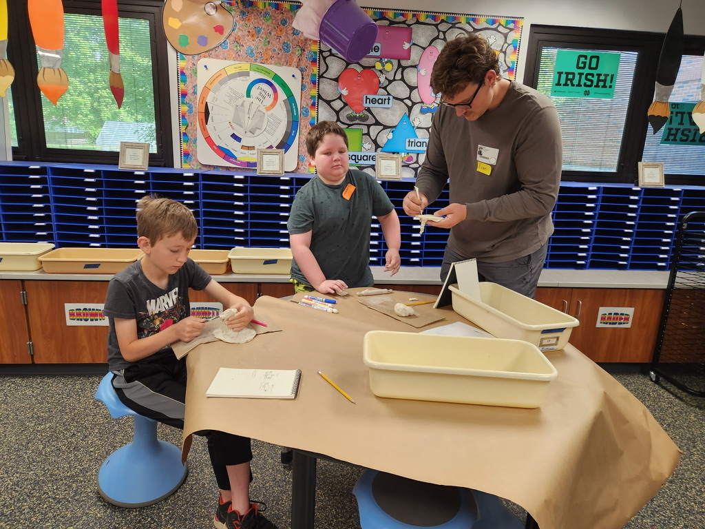 students and I worked with two groups of elementary students, one morning class and one afternoon class. We worked with multiple mediums, paint, clay, metal, and more.