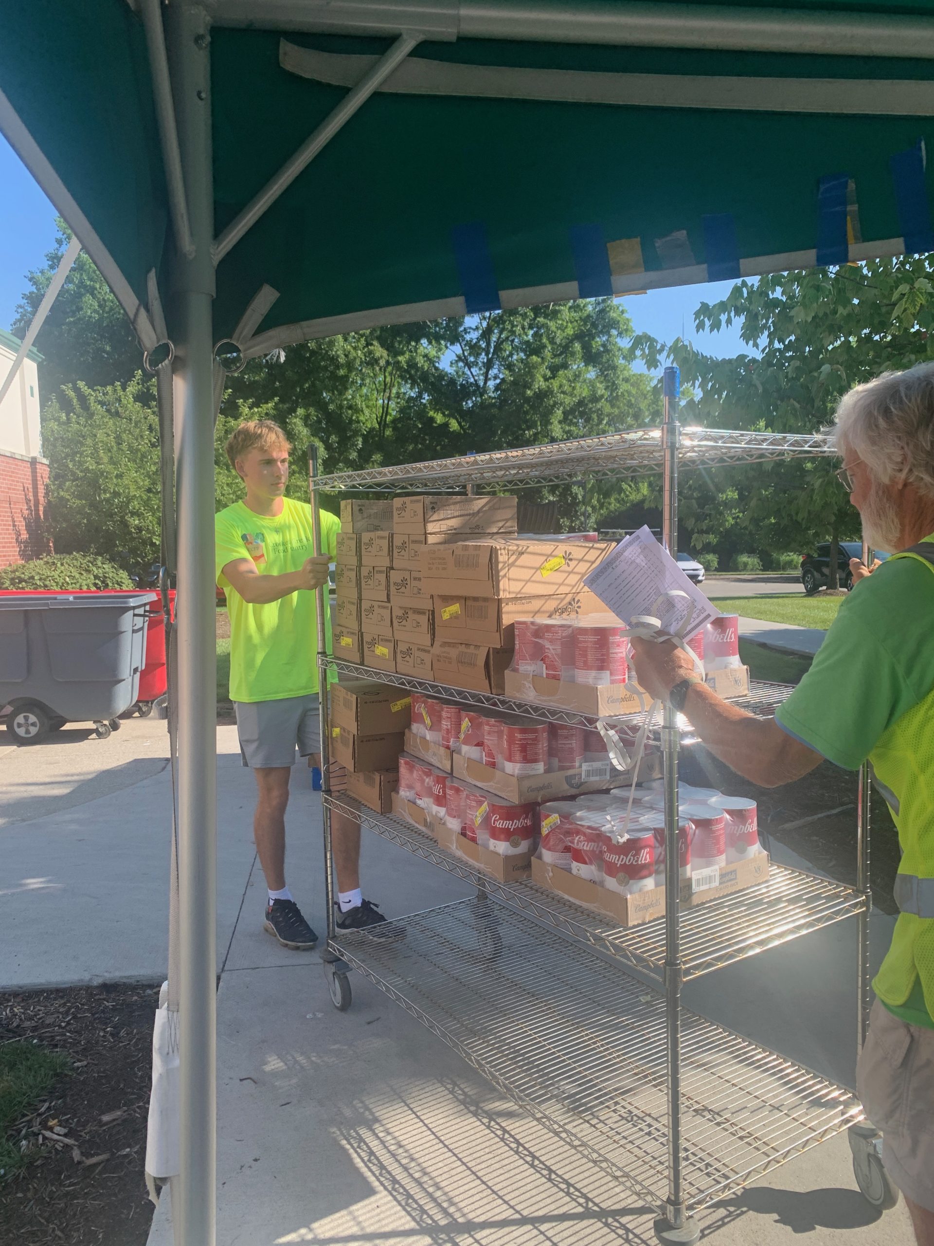 two different ways: restocking which was on Mondays and Tuesdays, or distribution on Wednesday, Thursday, and Friday. On distribution days recipients waited in line within their cars and as they reached the front of the pantry line they would be served food similar to a drive through. We were also able to care for those without a car. The pantry served around 300-450 families per day. I was lucky enough to be a part of the new pantry record which reached the 500s!